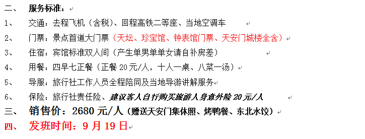 【北京專線】北京單飛單高5日游
