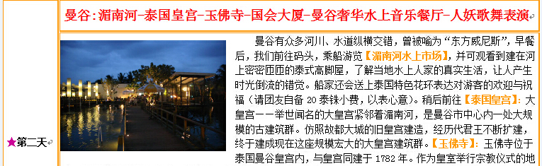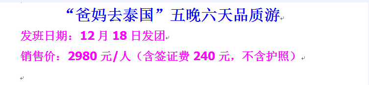 【泰國專線】五晚六天品質(zhì)游